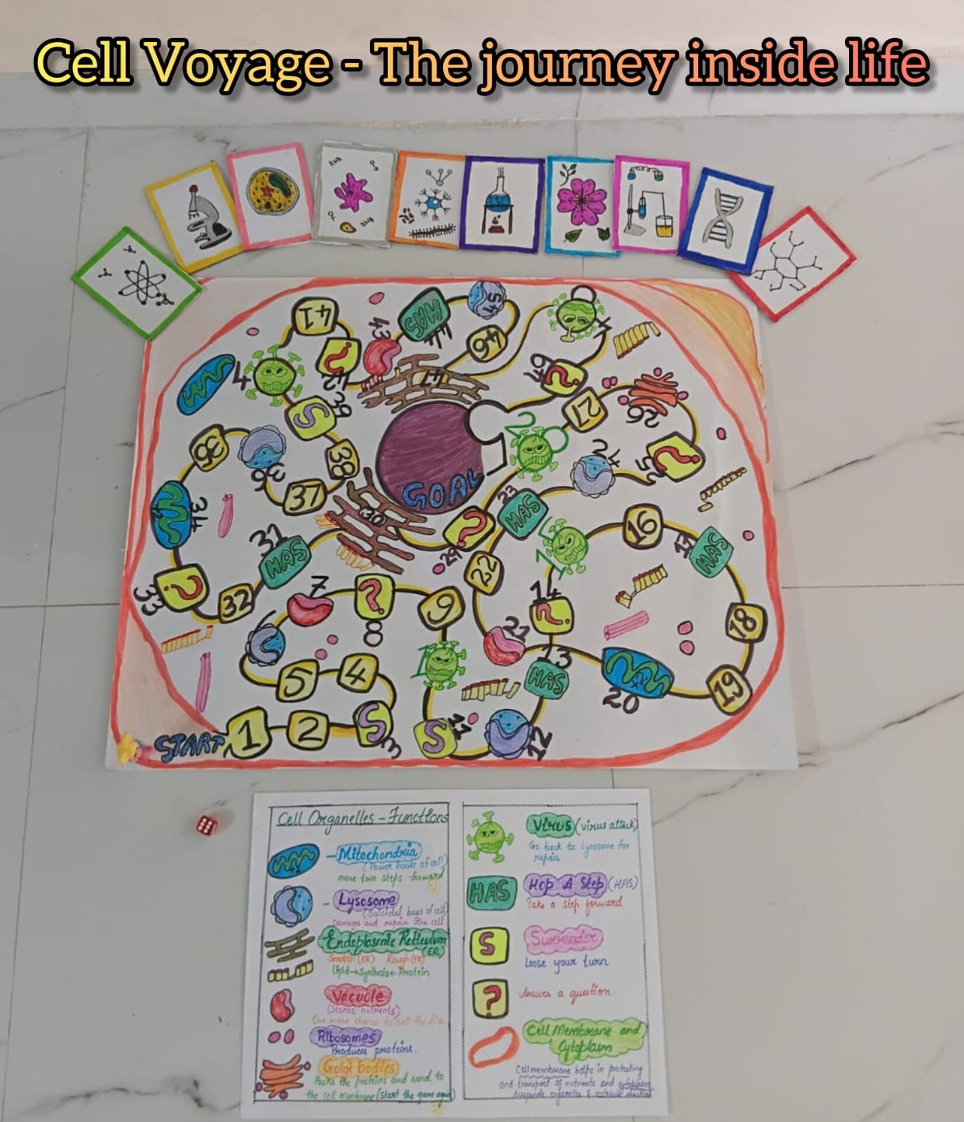 Create an art inspired by the microscopic world, e.g., cellular structures / microorganisms by creating stories around your artwork, turn cells into characters, and their adventures. Also mention any positive/negative effects on humans through conversation. It can be a secret imaginary world”.